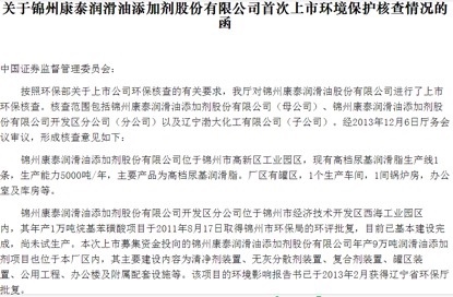 对此,锦州康泰表示,公司的抗氧抗腐抗磨剂具备环评报告书及环评验收报告,并已进行环保备案。