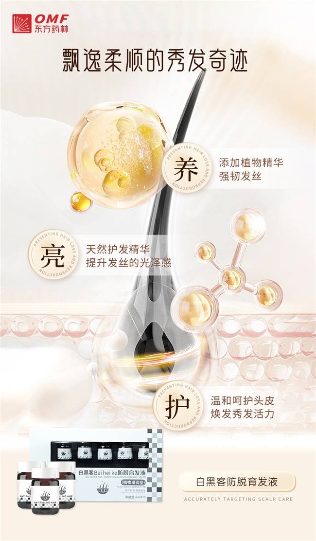 东方药林始终坚持以用户需求为核心,将传统草本精华与现代科技完美融合,为您带来更天然、更安全的护发体验。我们相信,飘逸柔顺的秀发是自信的源泉,而魔法丝白黑客防脱育发液正是我们为您精心打造的护发臻品,让您随时随地绽放头发的自然之美!